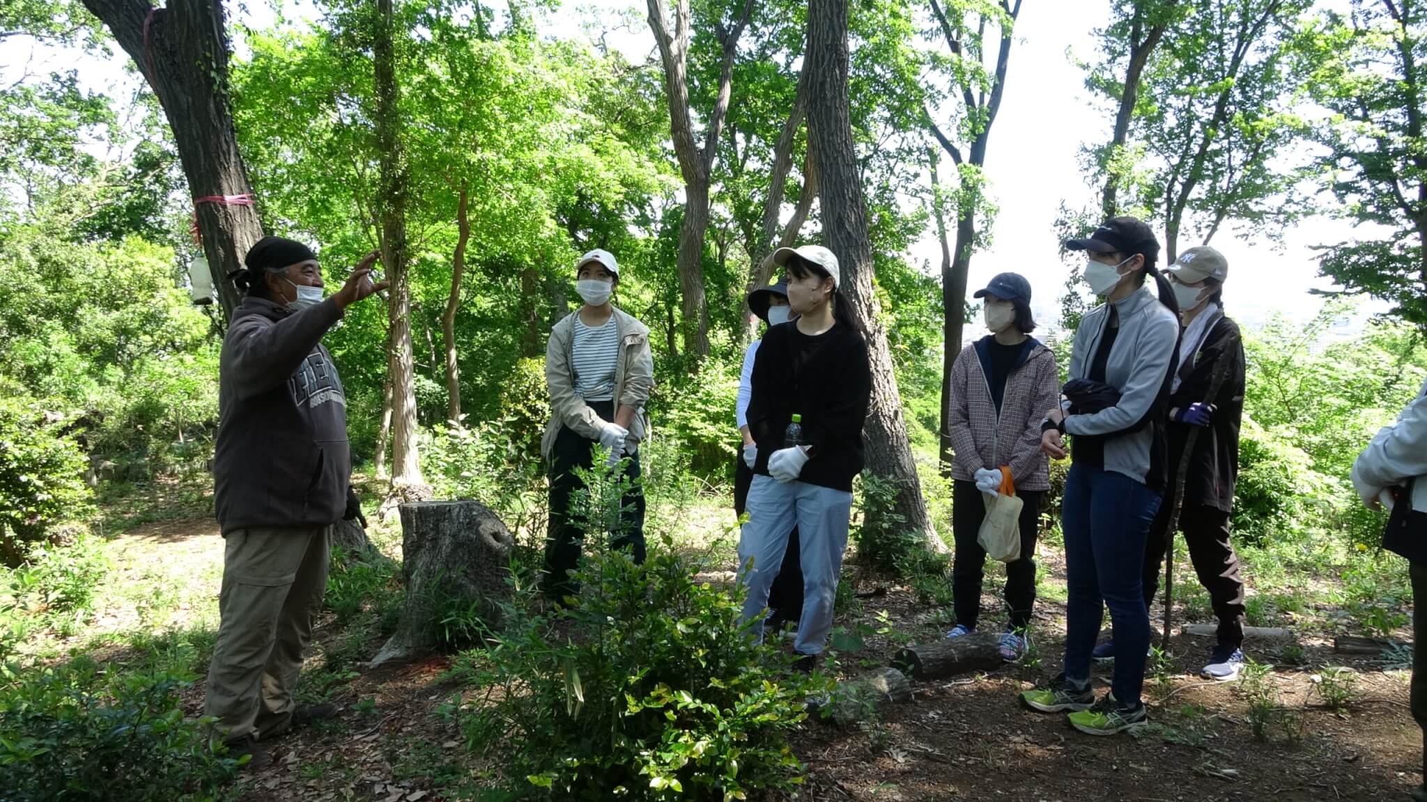 5月2日(火)、稲城市に所有する山林「いなぎめぐみの里山」で新人職員への研修を行いました。地域交流の場である里山が環境保全に果たす役割を学び、間伐作業や里山で育つ野菜の収穫などを体験しました。