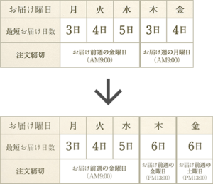 「木曜日、金曜日お届け分の注文締切日時を変更」いたします。