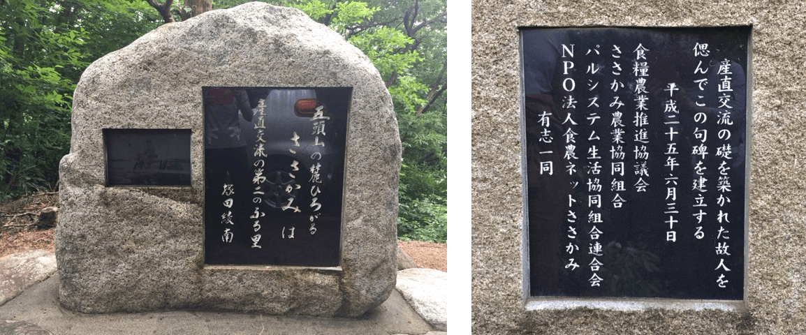 ▲パルシステムとの交流の証、石碑。毎年たくさんの組合員が訪れてきた歴史でもあります。