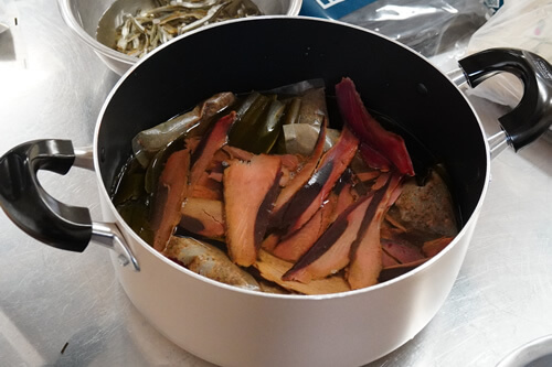 だしを取った後の材料は、細かく刻んで佃煮を作りました。