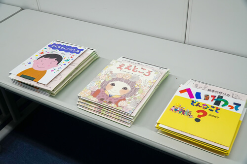 今回使用した絵本(左から)どんなかんじかなあ」自由国民社/「ええところ」学研プラス/「へいわってどんなこと?」童心社