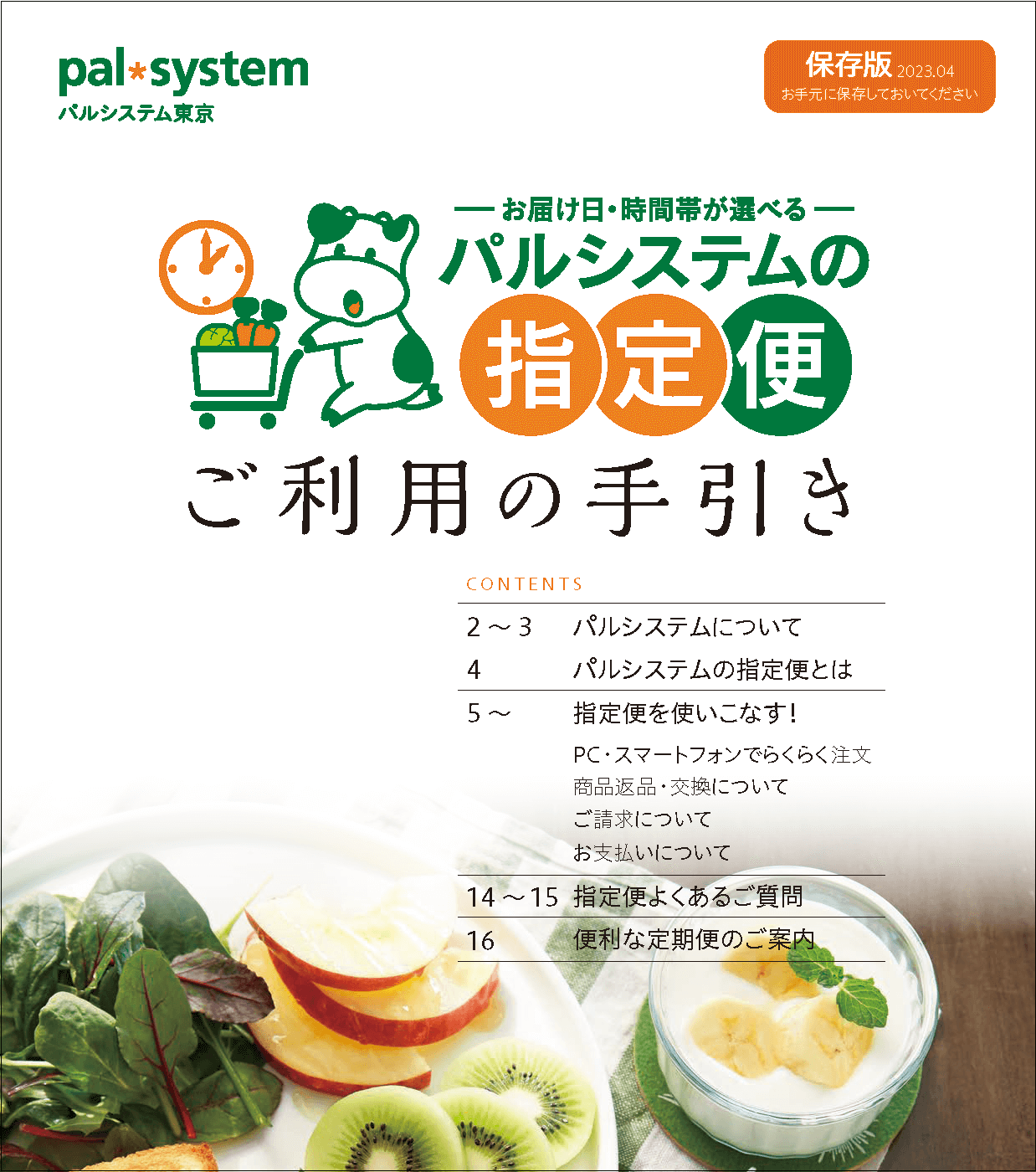 宅配サービスに新しくご加入いただいた際にお渡ししている「利用の手引き」や「特典ガイド」をWEB上で公開しています。