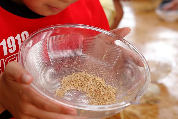 3. ボールとすり鉢を使って籾摺り(もみすり)をしましょう