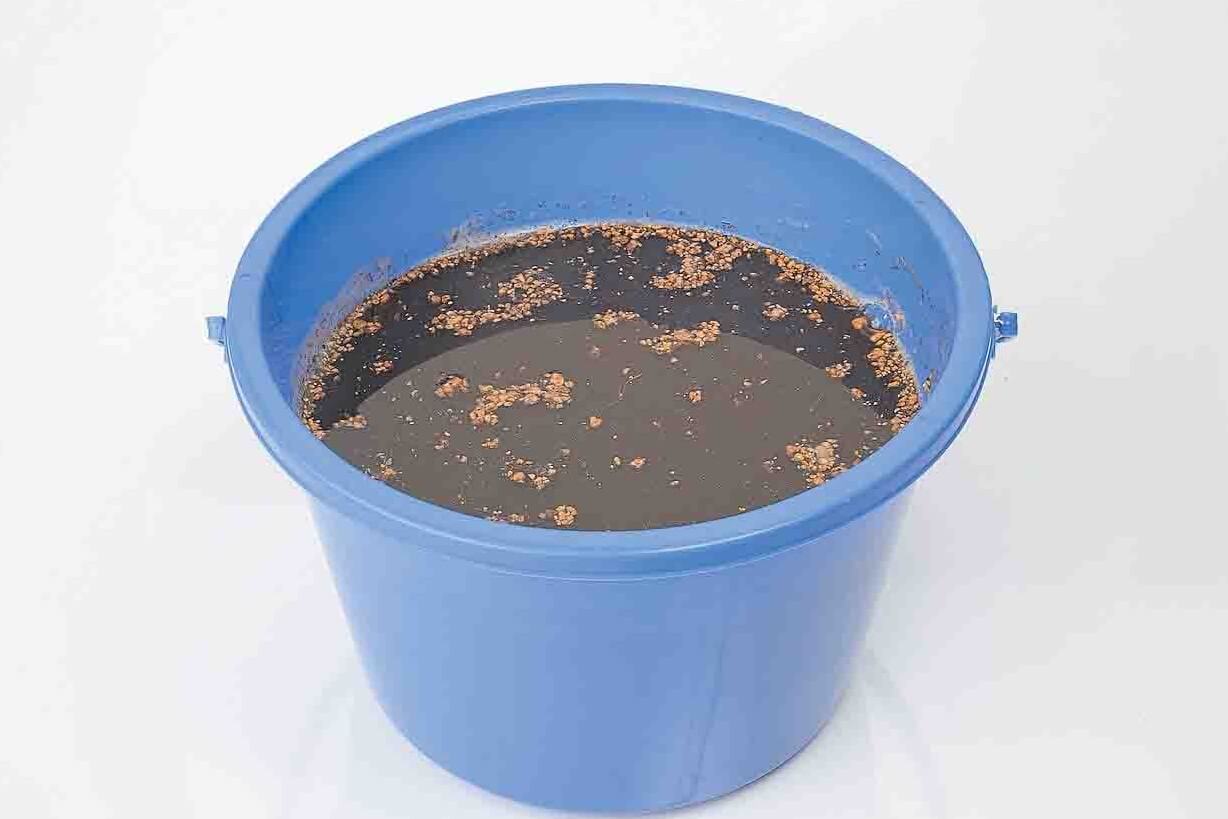 土は7ℓ(リットル)程度入れます。バケツ一杯に入れてしまうと、水を入れたときにあふれてしまいますので、気を付けてください。