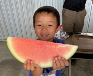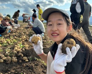 広大な畑で、旬のじゃがいも・ミニトマトの収穫体験!スイカの試食や、ジンギスカンBBQを囲んで生産者と交流会♪