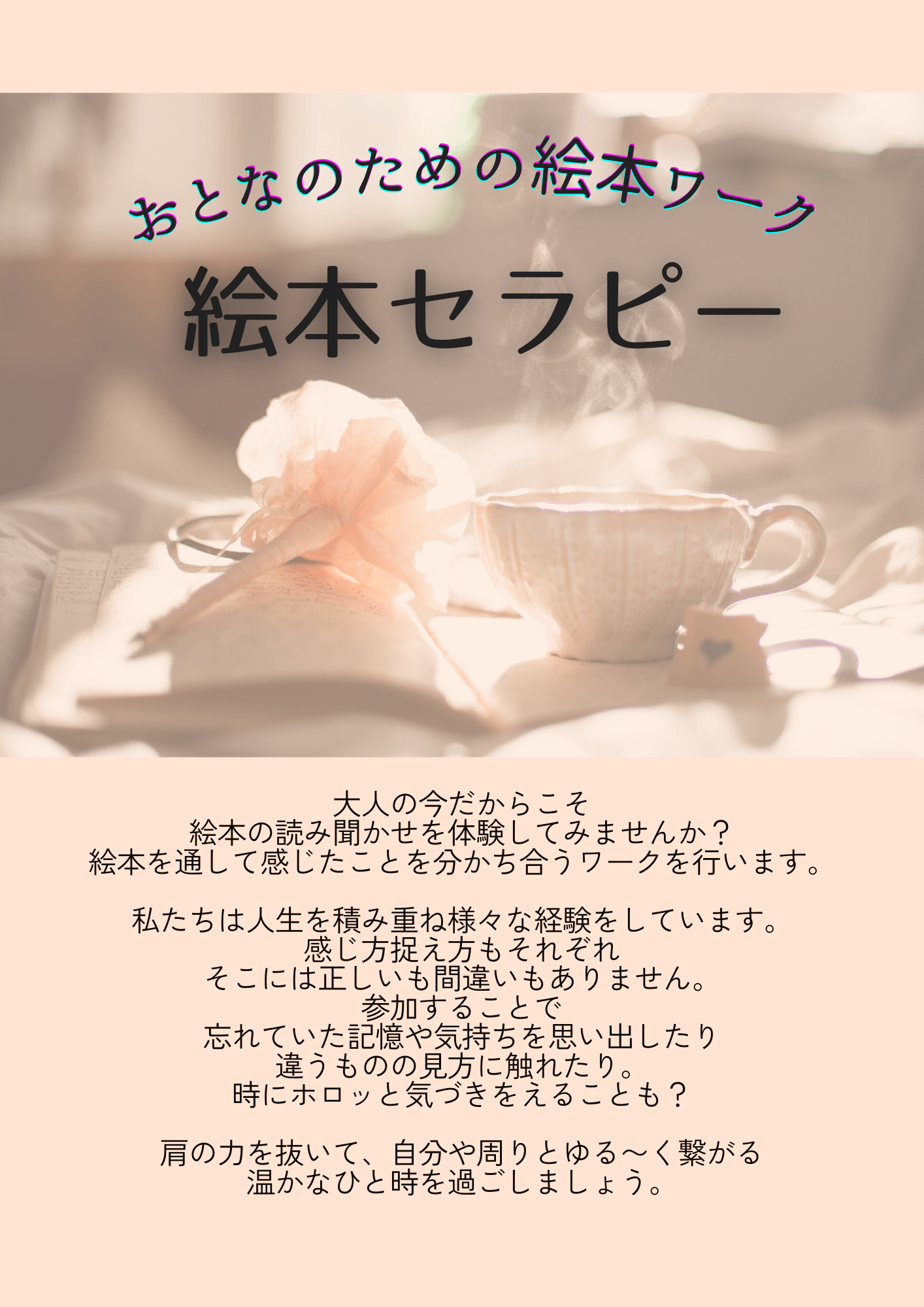 内容 絵本の読み聞かせを通して感じたことを分かち合うワークを行います。忘れていた記憶や気持ちを思い出したり、個々の感想の違いに新たな視点を得ることも。茶話会形式。