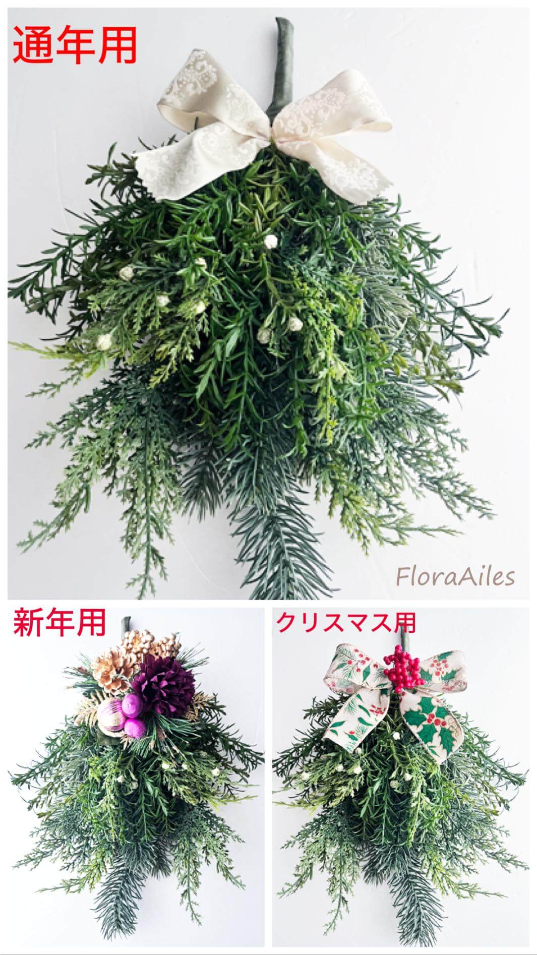 内容 アーティフィシャルグリーンでスワッグを作ります。 お花をプラスして更に華やかなスワッグにしたり、パーツの付替えなどでクリスマスや新年、季節に合ったものにしたり、それぞれの企画に合った作品作りが可能です。ものづくりの時間をお楽しみください。