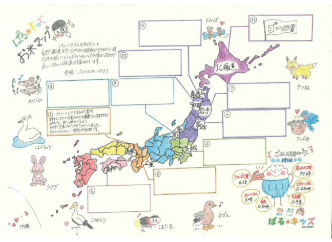お米産地や品種を紹介しながら「お米マップ」を完成させていきます。
