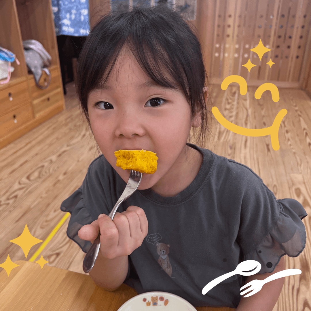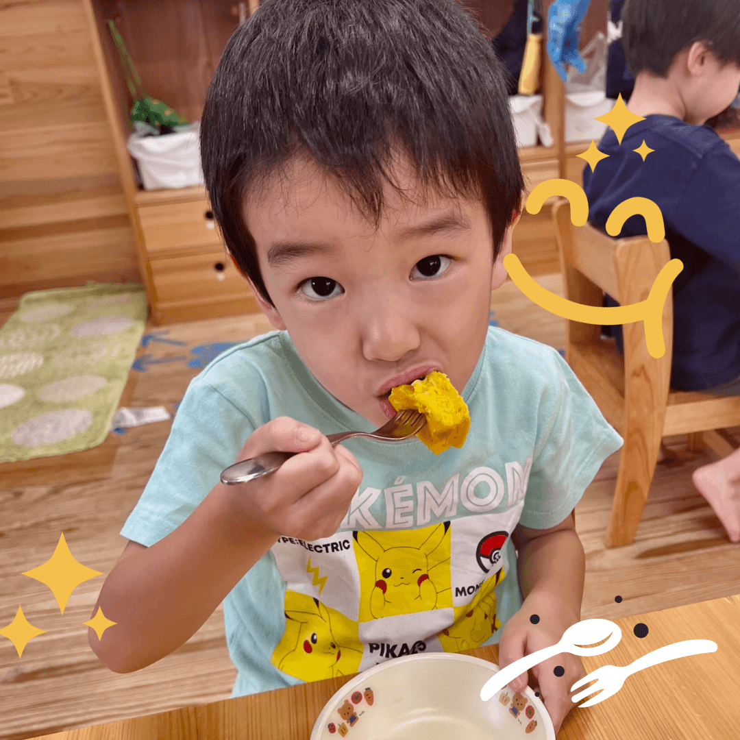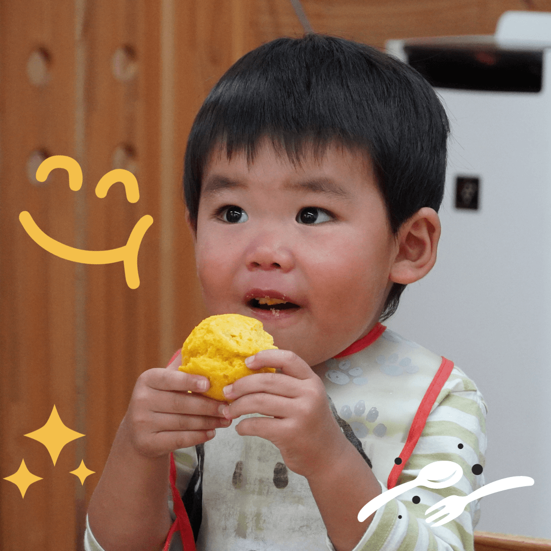 かぼちゃ本来の素朴な甘味とふんわりした食感に子どもたちの食も進みます!牛乳との相性もバッチリですよ♪