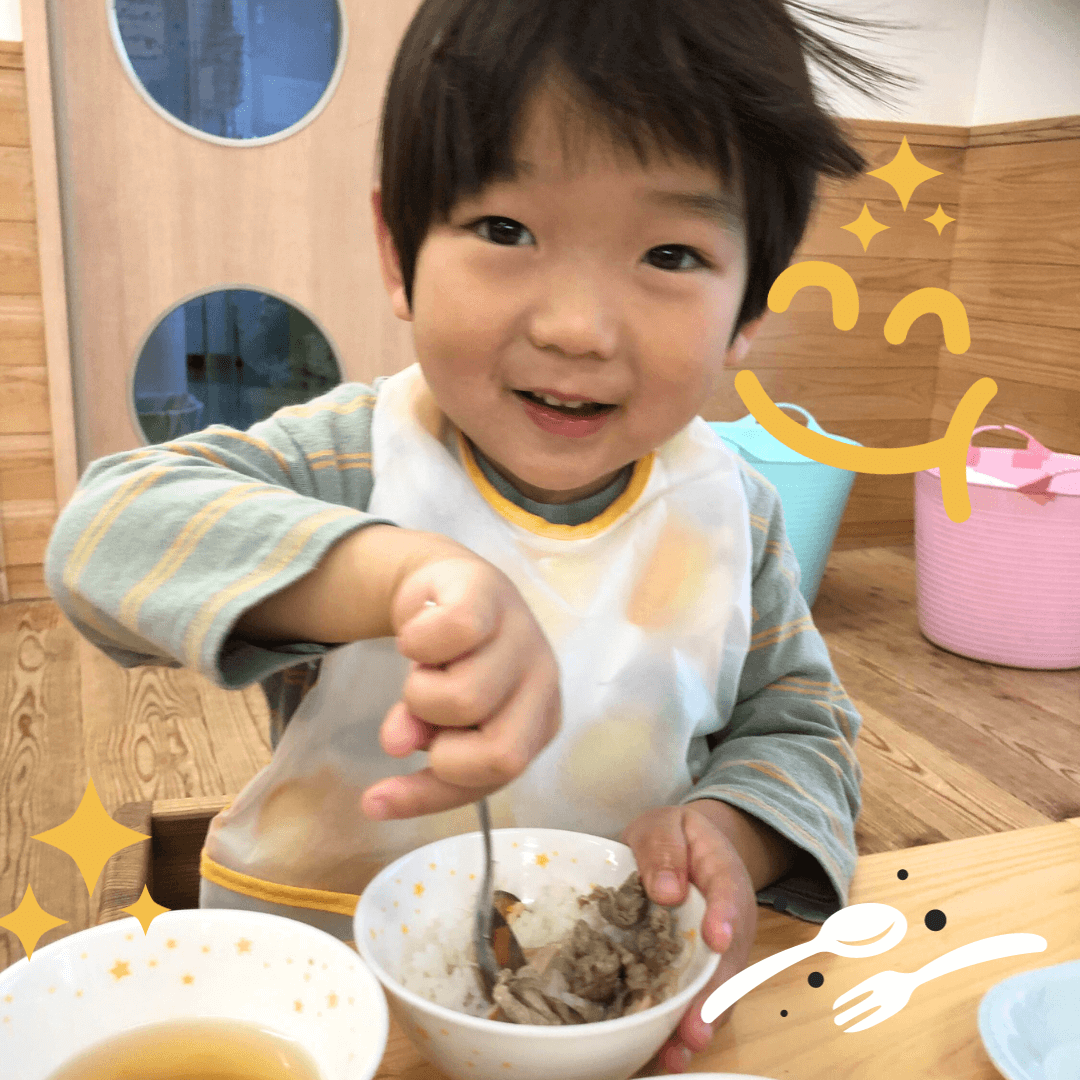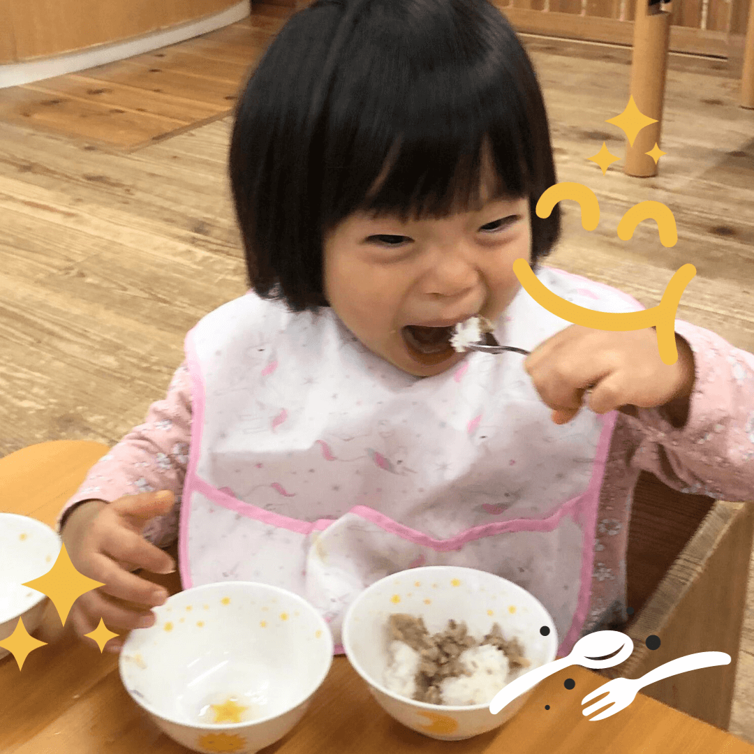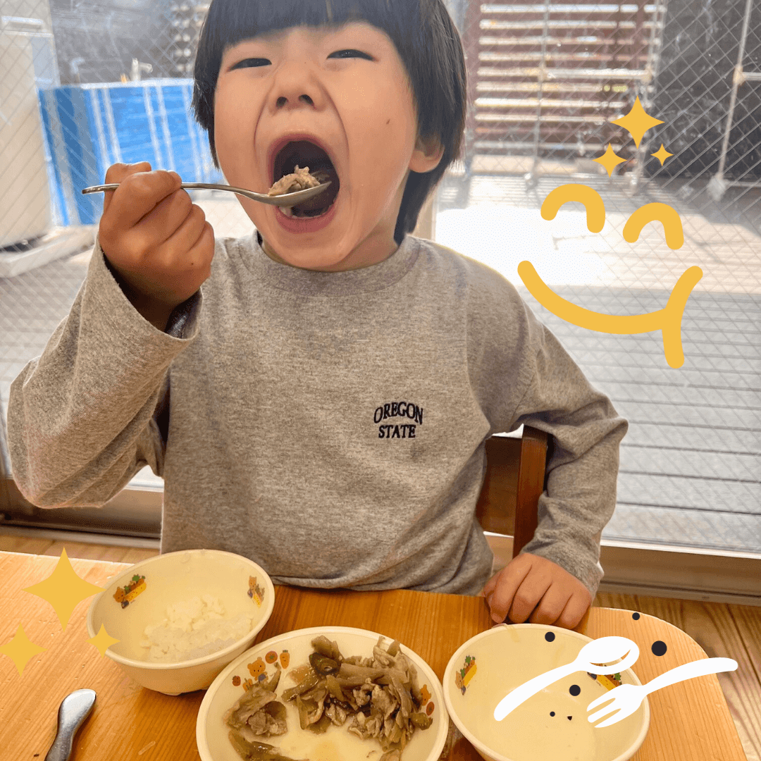 「いただきます!」のご挨拶と一緒に、真っ先にお肉に手が伸びる子どもたち。