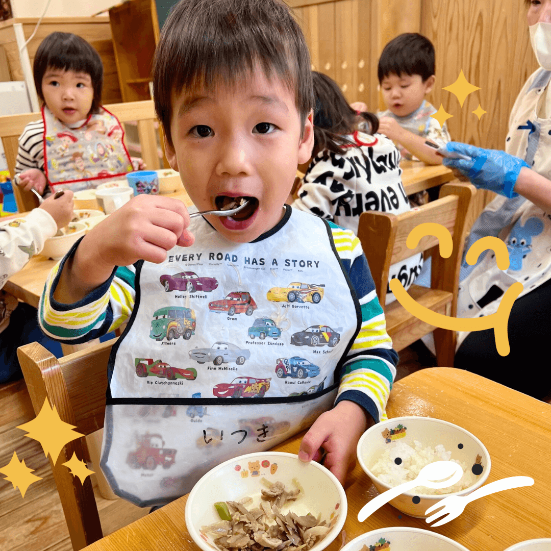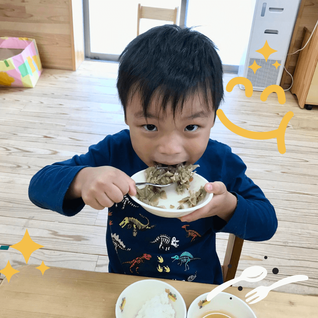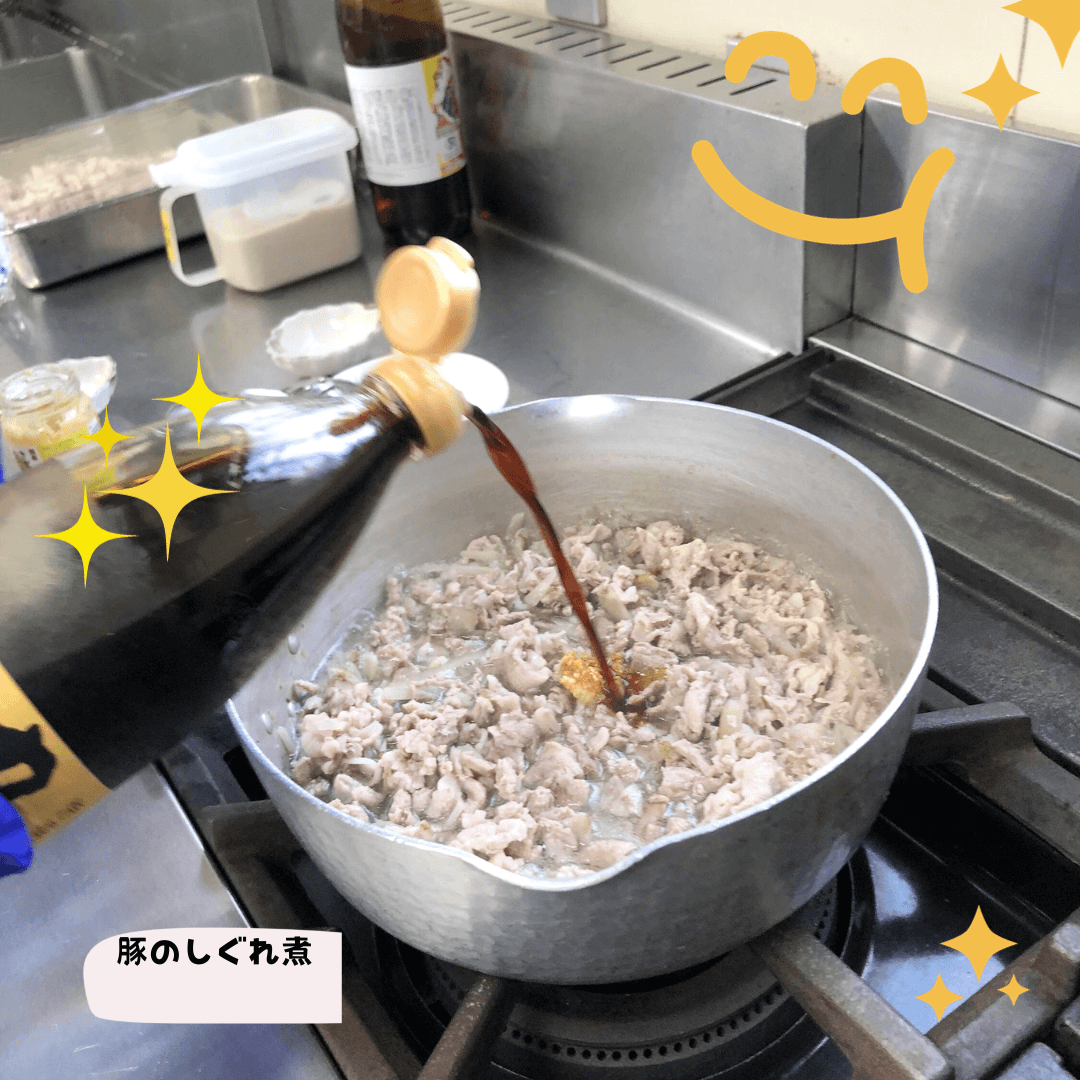 ごはんに乗せて「豚肉のしぐれ煮丼」にして食べる子も続出していました★