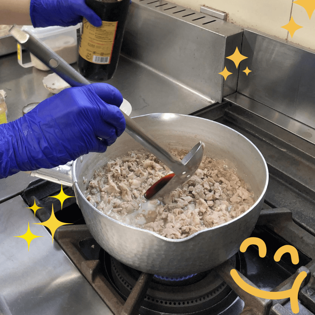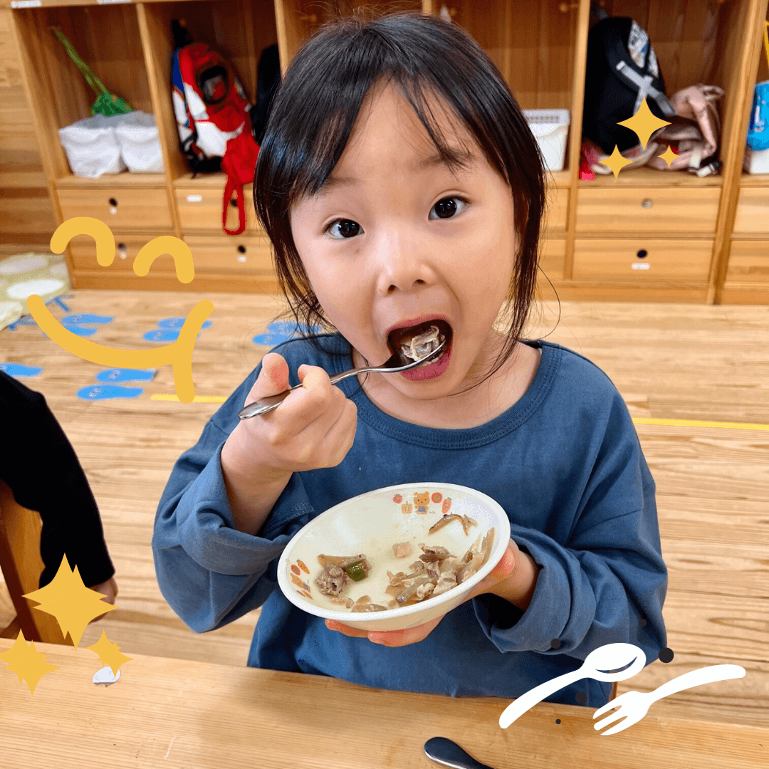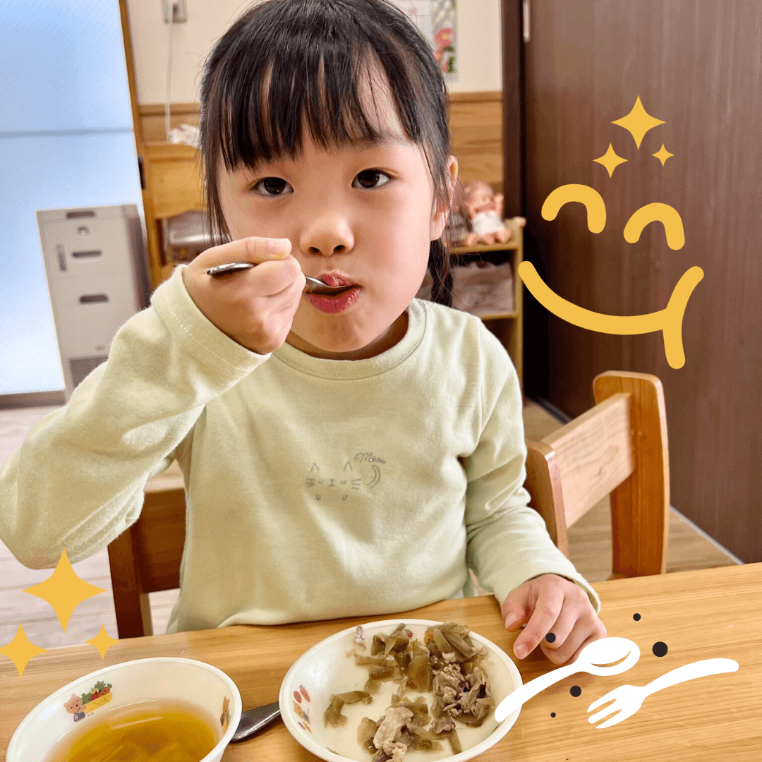 ごはんに乗せて「豚肉のしぐれ煮丼」にして食べる子も続出していました★