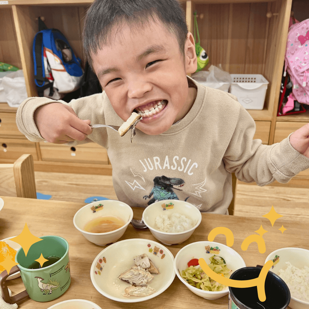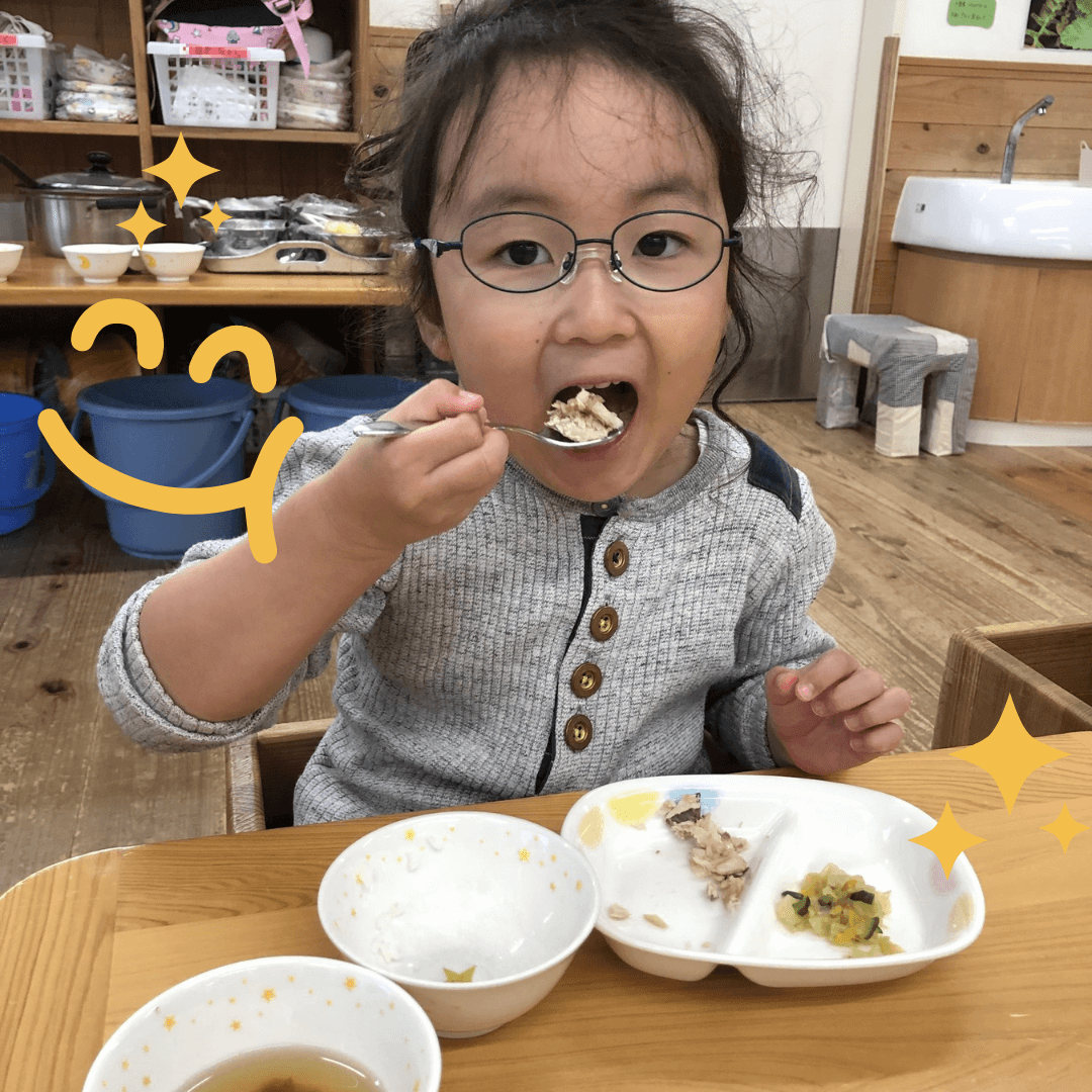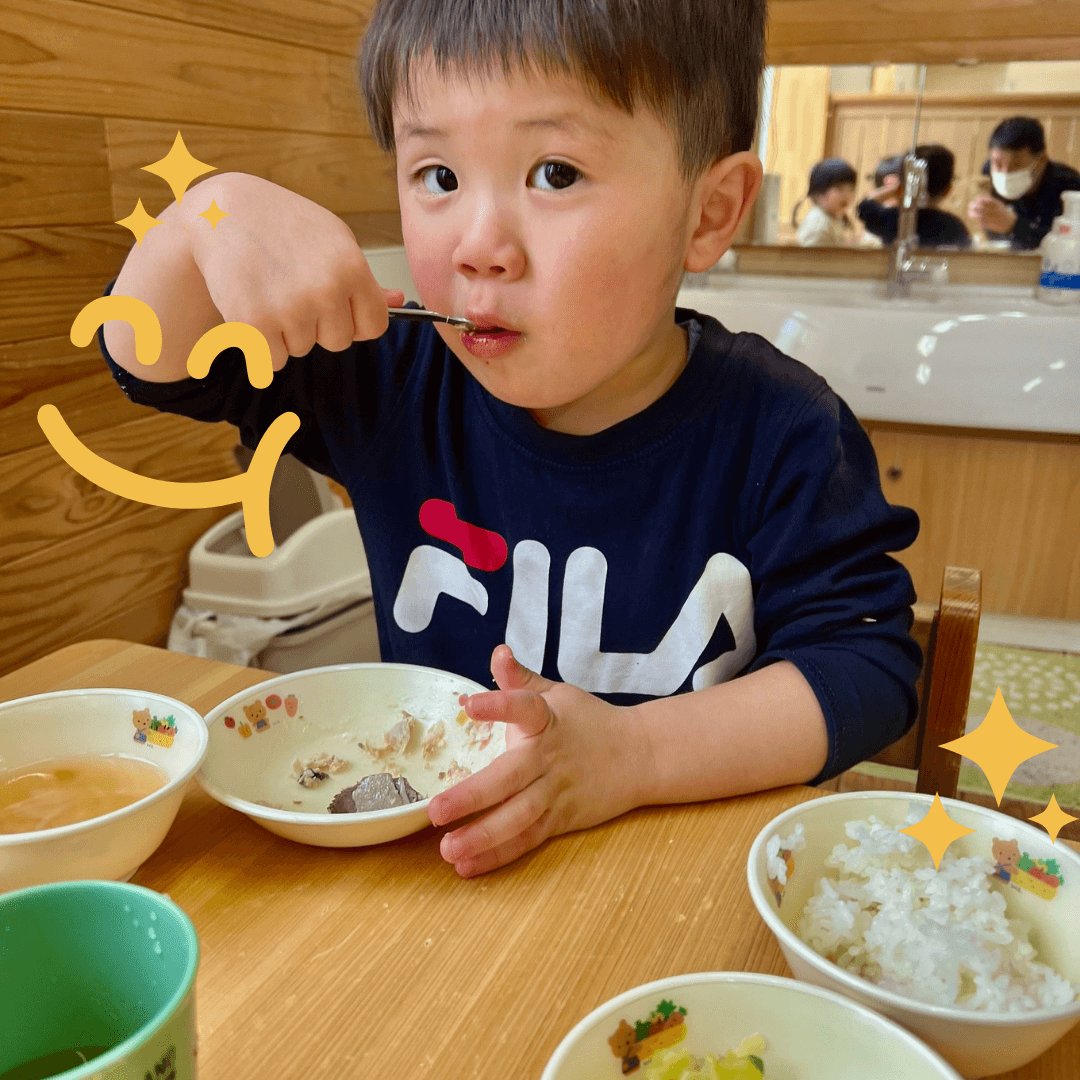 ぶりをみると「お魚ごはんにして!」という子どもたち。白いご飯の上にのせて一緒にほおばるとこの笑顔♪見ている職員が嬉しくなりました!