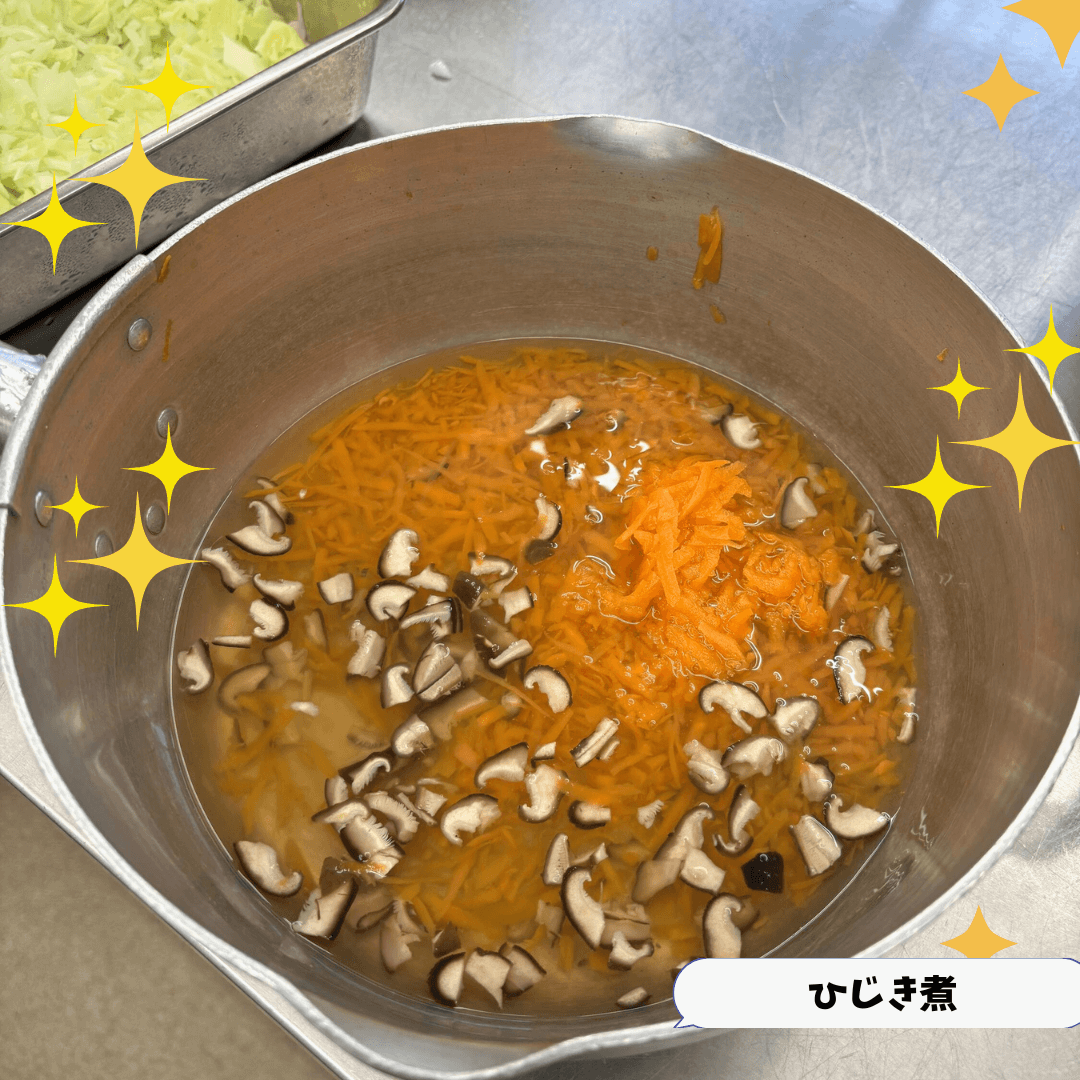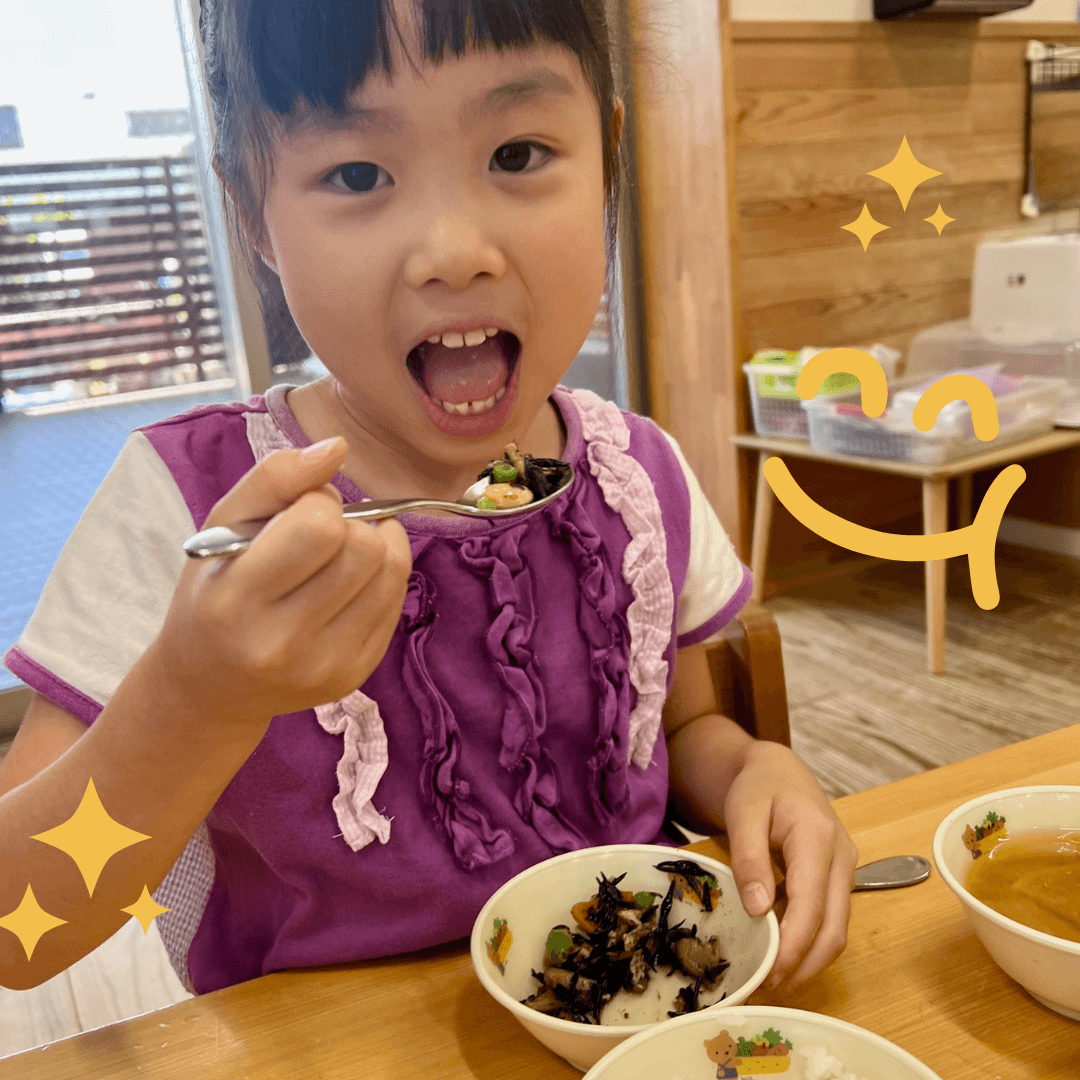 ひじきの色合いは、子どもたちにとって一見躊躇しがちだったりするもの。でも一口食べると、ごはんにピッタリの甘辛の味付けと大豆本来の甘味が後を引いて絶品!ご飯がすすむ子どもたちでした♪