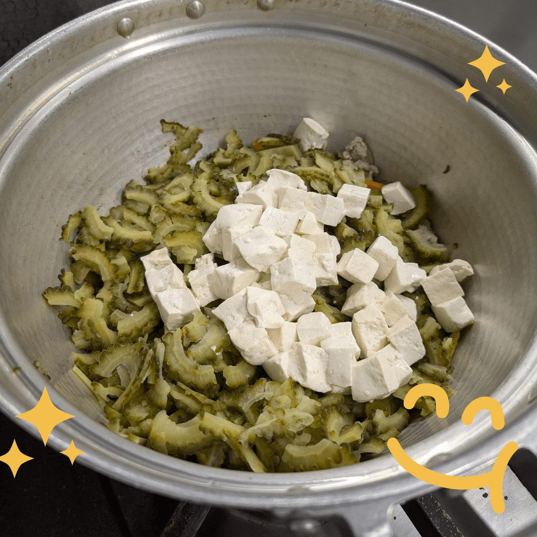 | ゴーヤちゃんぷるー | 材料(2~3人分) ゴーヤ 1本(194g) 人参 1/3本(50g) しいたけ 2個(31g) 木綿豆腐 1パック(150g) 菜種油 小さじ1(4g) 産直鶏ガラスープ 小さじ2(6g) 国産丸大豆しょうゆ 小さじ2(14g) 塩 一つまみ 白すりごま 小さじ2(6g) 片栗粉 小さじ1(約3g) 水 小さじ1(約5g) |