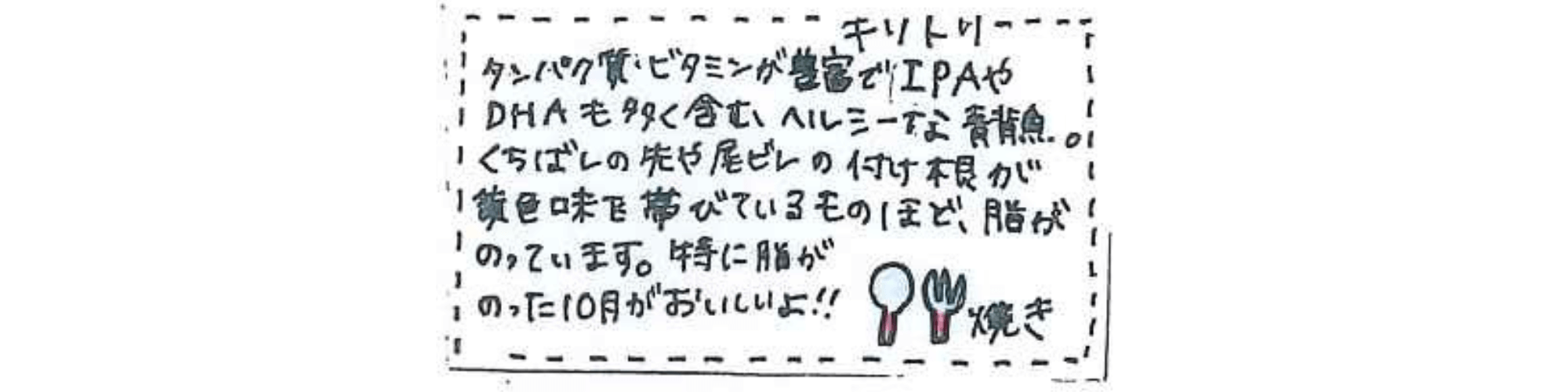 くちばしの先や尾ビレの付け根が黄色味を帯びているものほど、油がのっています!