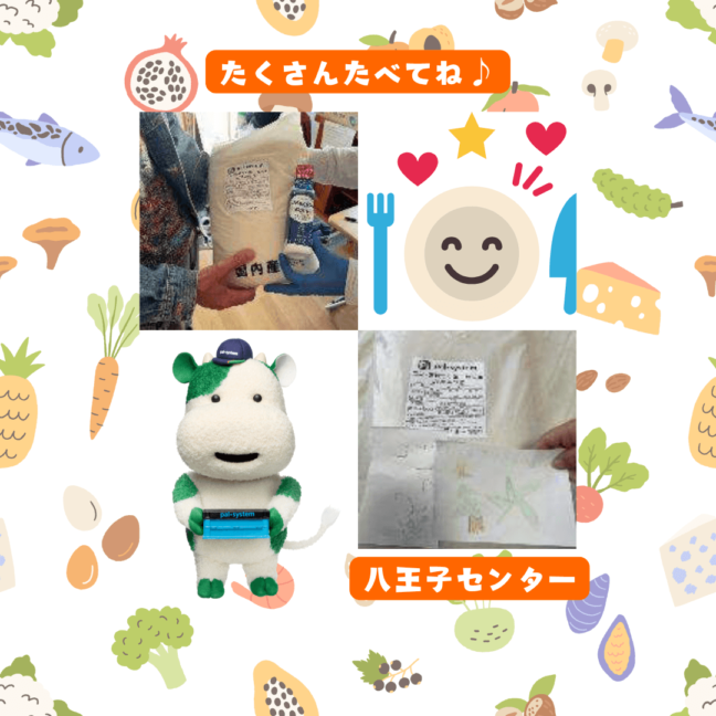 八王子センターより11月25日(月)に「ほっこり食堂」「虹色食堂」「子ども食堂カフェ北野」、11月26日(火)に「ほいっぷ食堂」「すずらん食堂」「子ども食堂キッチンゆぎのや」、11月27日(水)に「子ども食堂ふくろうはうす」に寄贈しました。