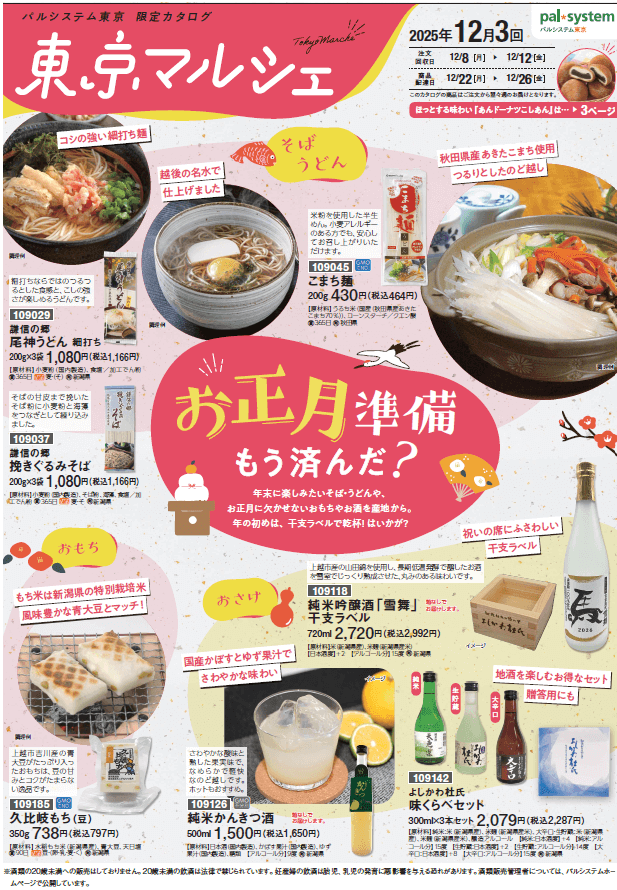 12月3回を配付中です!パルシステム東京限定カタログ「東京マルシェ」