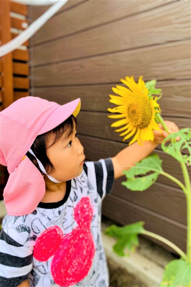 園庭に咲いた「はるかのひまわり」。その種を次の子どもたちへとつないで、来年の夏も、再来年の夏も、園庭に燦然と輝く「はるかのひまわり」を見つめ、命の尊さを一緒になって考えていきたいと思います。