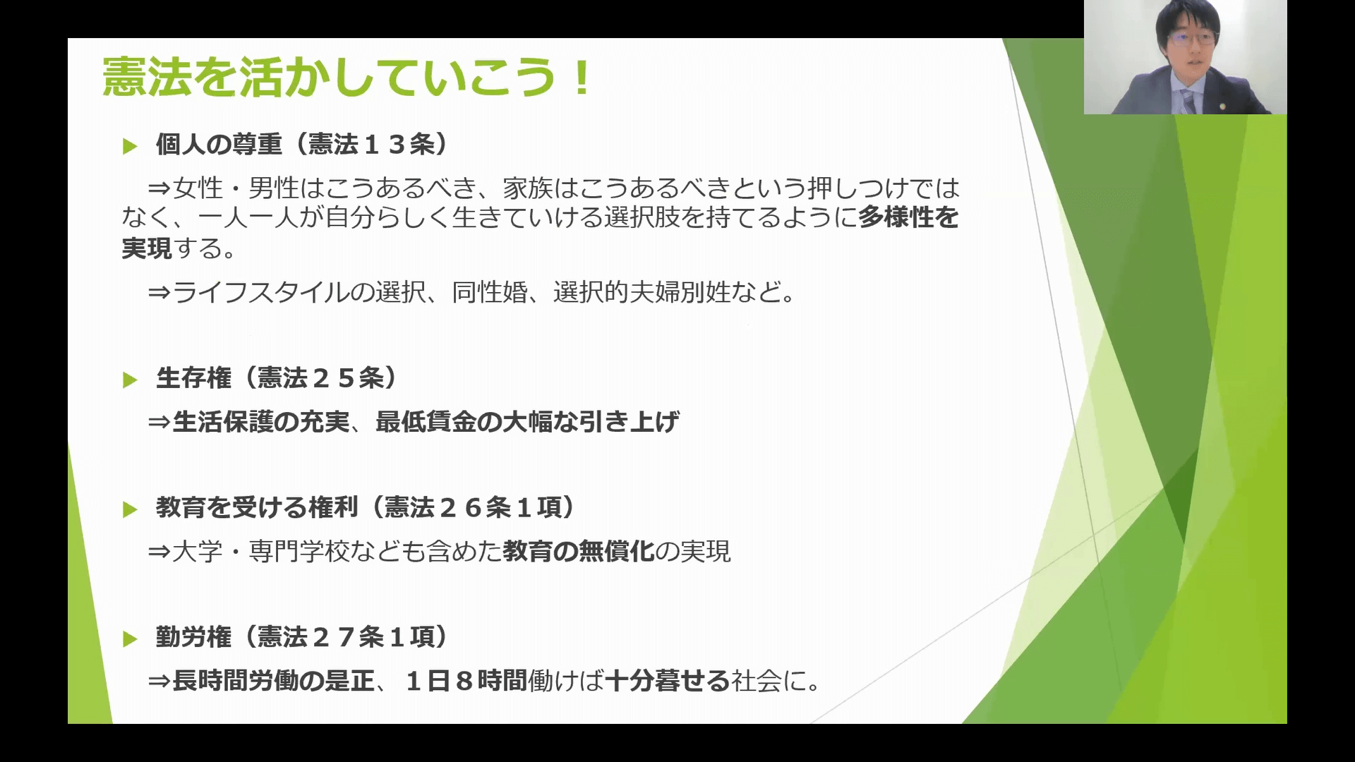 2023年5月13日(土)、オンライン憲法カフェ「ひらい先生と憲法を学んでみよう!」を開催しました。(35人参加)