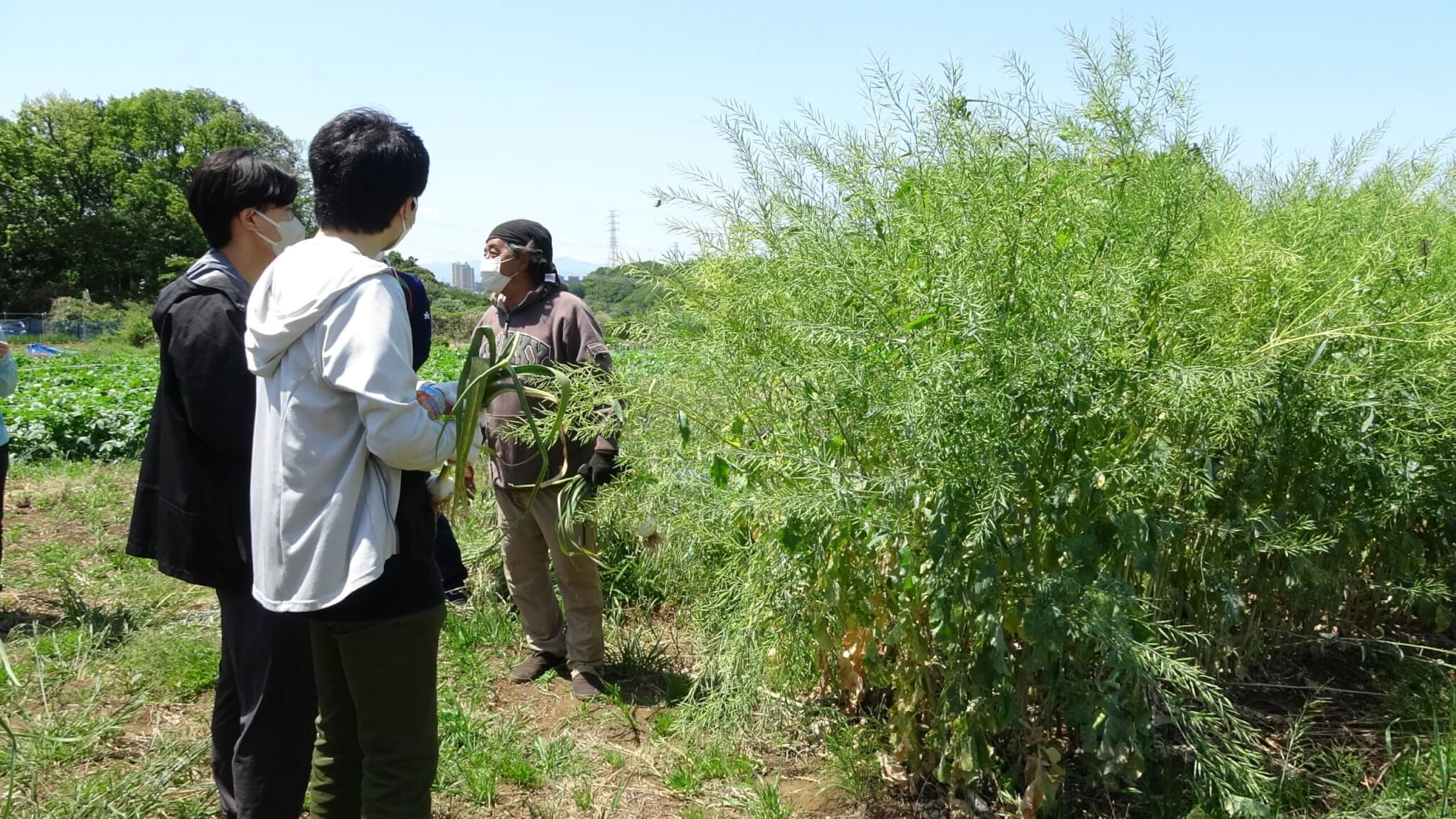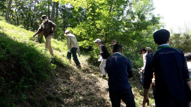 5月2日(火)、稲城市に所有する山林「いなぎめぐみの里山」で新人職員への研修を行いました。地域交流の場である里山が環境保全に果たす役割を学び、間伐作業や里山で育つ野菜の収穫などを体験しました。