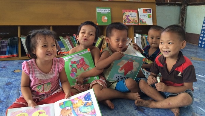 タイ国境の難民キャンプ。シャンティ国際ボランティア会が運営するコミュニティ図書館にて。