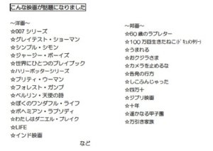 ・あっという間の2時間でした。映画のテーマを絞った方が良いかなとも思いましたが、手ぶら感覚で気軽に参加できてよかったです。