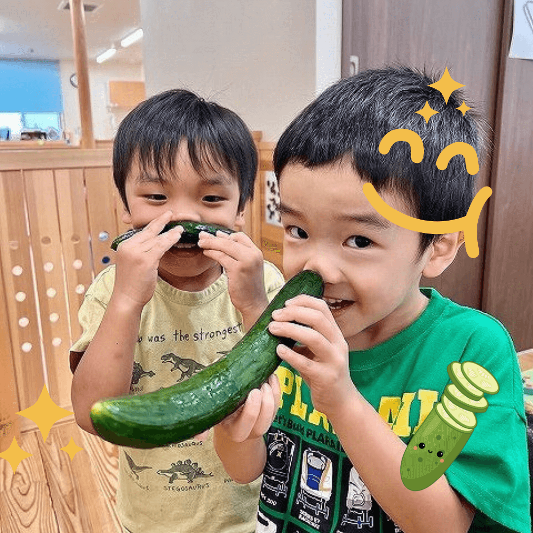 いろんな大きさや形のきゅうりが、子どもたちの豊かな想像力にかかると様々なものに変化します。