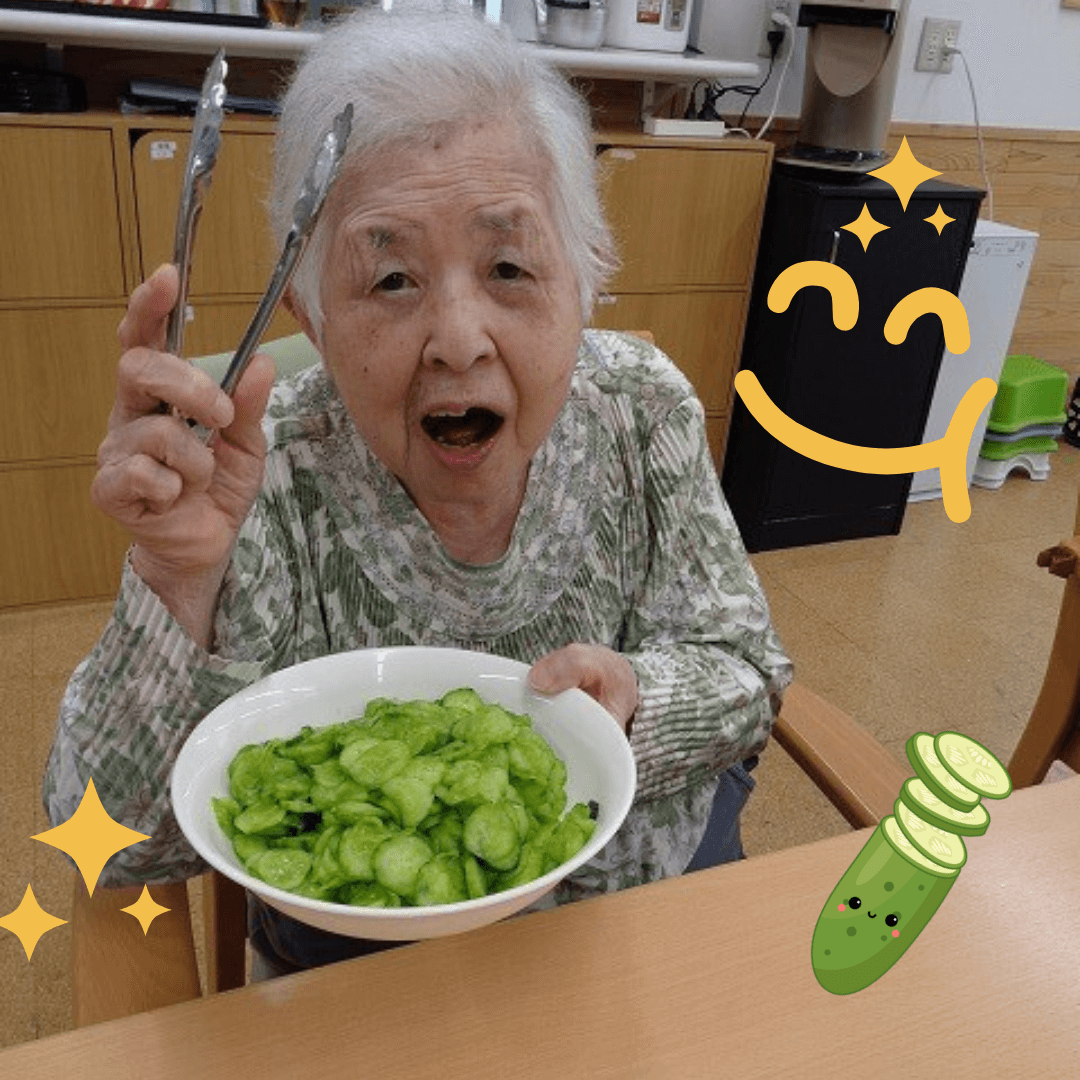 ご利用者さんに「きゅうりの塩もみ」を作りました。