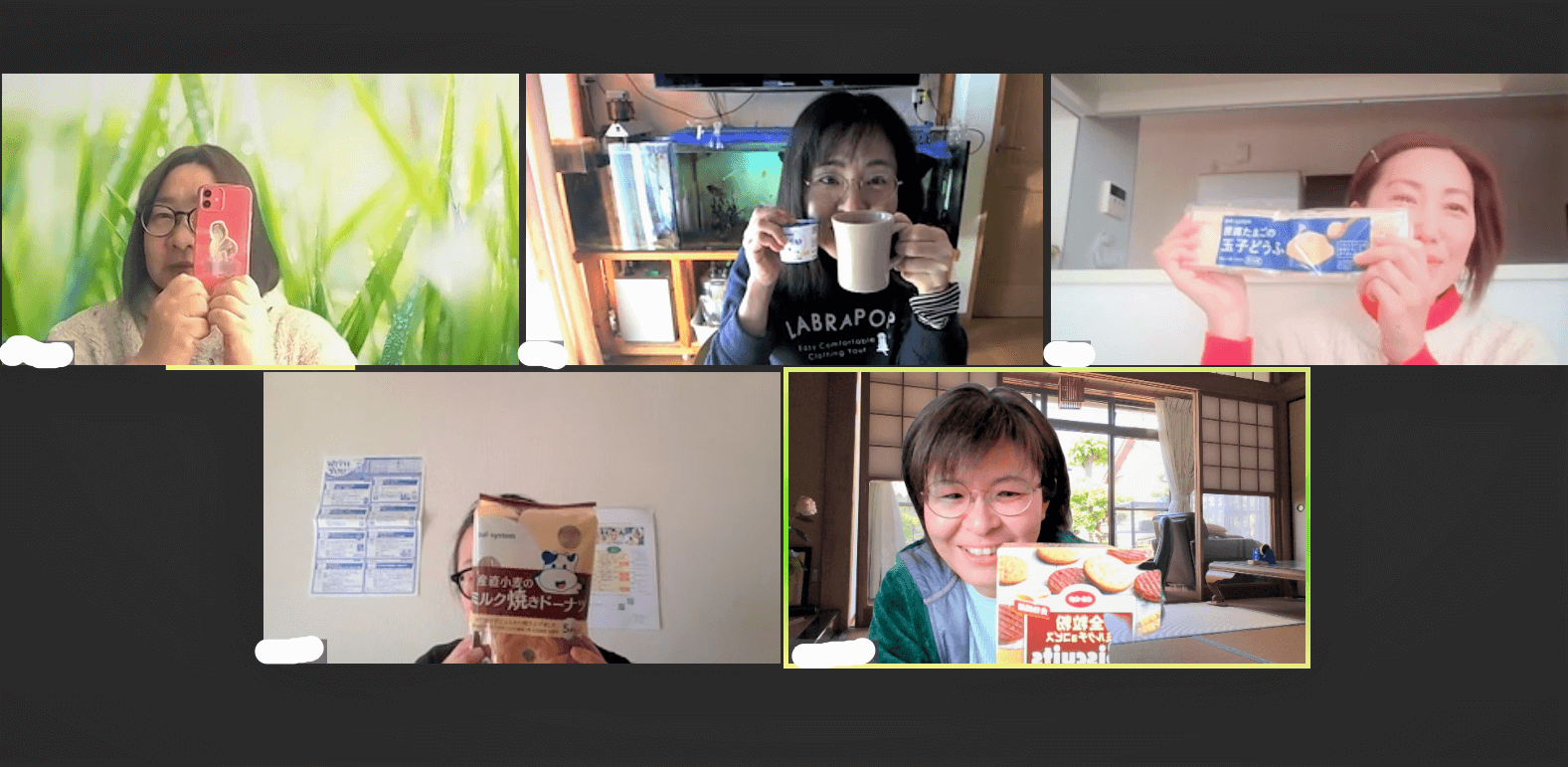 ● こんな企画があったことを初めて知り即応募!モニター越しに数人で話すのは難しいかな。と緊張はありましたが進めてくれる方もいて話題も変わっていき、みんながおしゃべりできました。