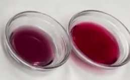レモン果汁を入れる前後の写真です。