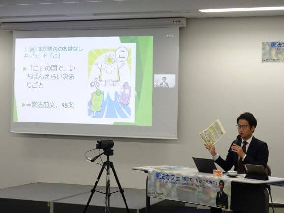2024年9月7日(土)、憲法カフェ「教えて!なかこう先生」~私たちの「あたりまえ」は憲法がつくったということ~」を開催しました。オンライン32名、会場7名参加。