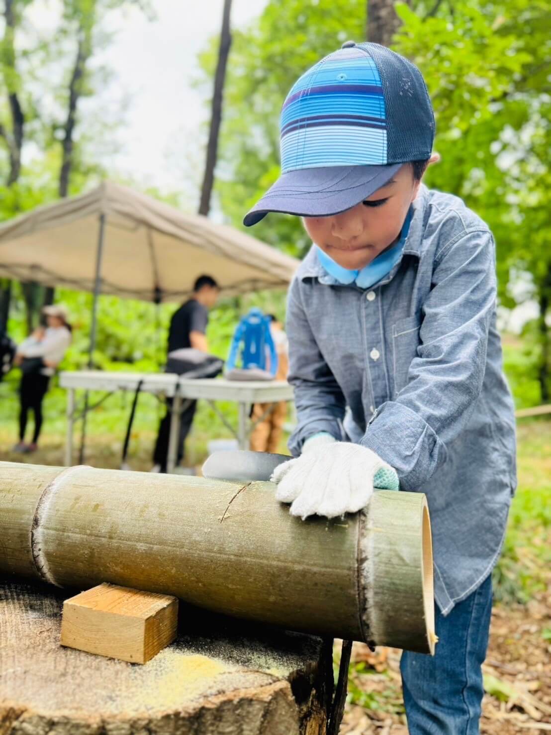 参加者からの声:「子供の念願だった本物の竹を使った流しそうめんに参加することが出来、とても嬉しかったです。自分達でお椀を作って食べて、そうめんを流すお手伝いをしたり、楽しかったようです。 」