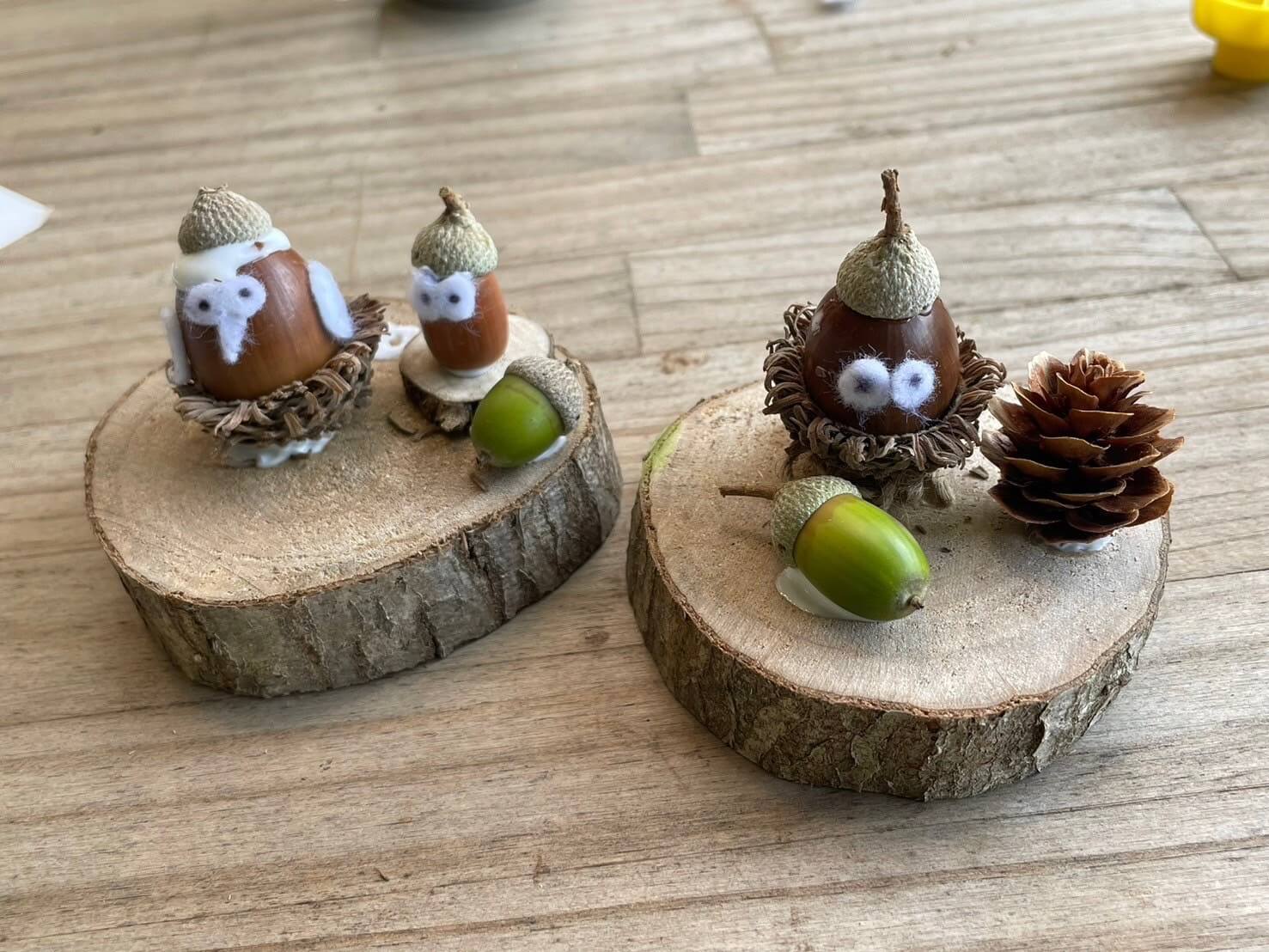 栗ひろいの後、いろいろなどんぐりで工作を行いました。