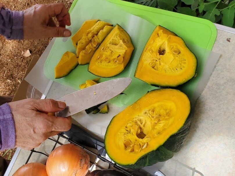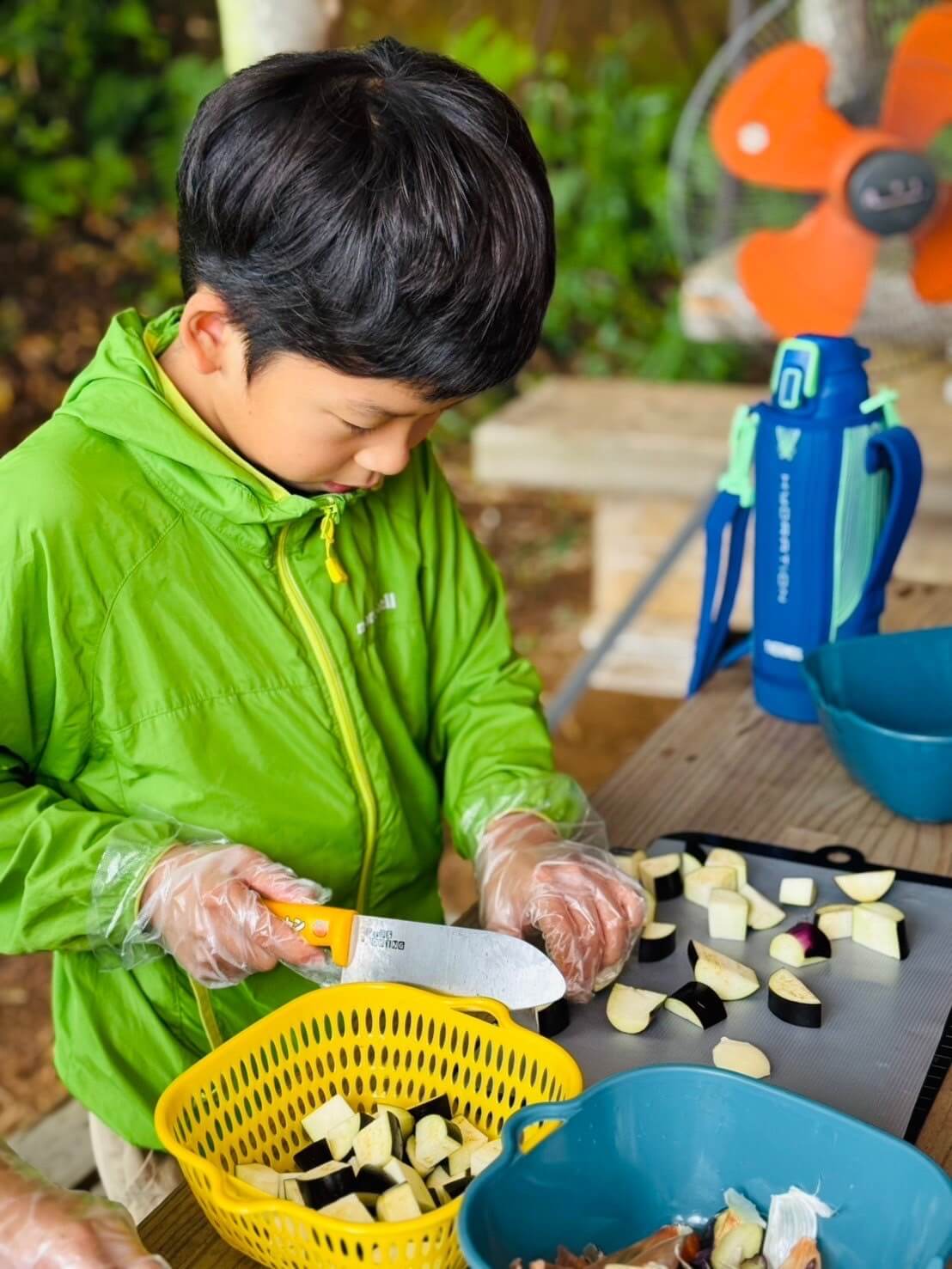 畑に最後に残った夏野菜を使って野菜スープを作り、その後里山の散策を行いました。
