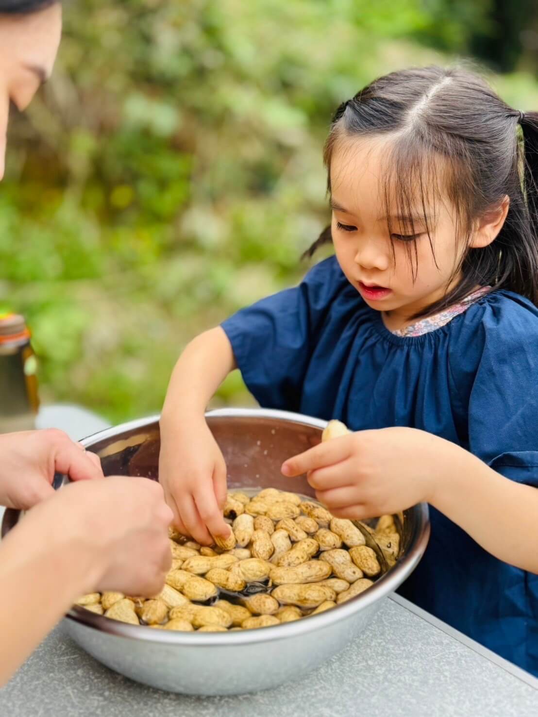 「ピーナッツの収穫からでき、初めてで楽しかったです。 ピーナッツがとても美味しく、すり鉢も家ではなかなか体験できないので、とても面白かったです。またとても美味しかったです。 ピーナッツとバジルを入れたのも、香りが良く美味しく子供も美味しい!と驚いていました。」