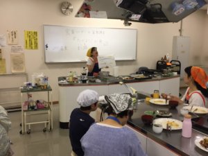 そのほか、きのこのマリネ、豆腐と揚げの味噌汁も調理。味噌汁は、煮干しと昆布で丁寧に出汁を取るところから子どもたちが挑戦。魚で出汁を取る方法を学びました。