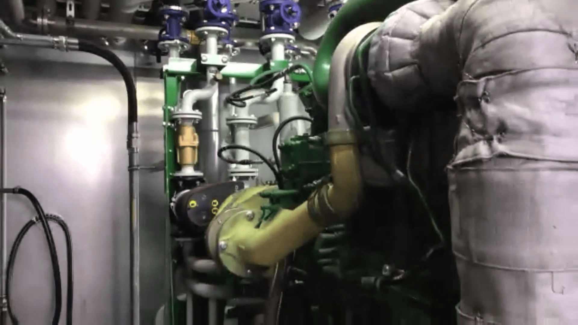 メタンガスを燃焼し発電、二酸化炭素と水が発生する