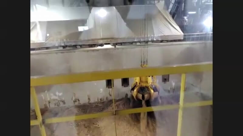 鶏ふんと敷料が混ざったものをクレーンで移動や水分を均一化
