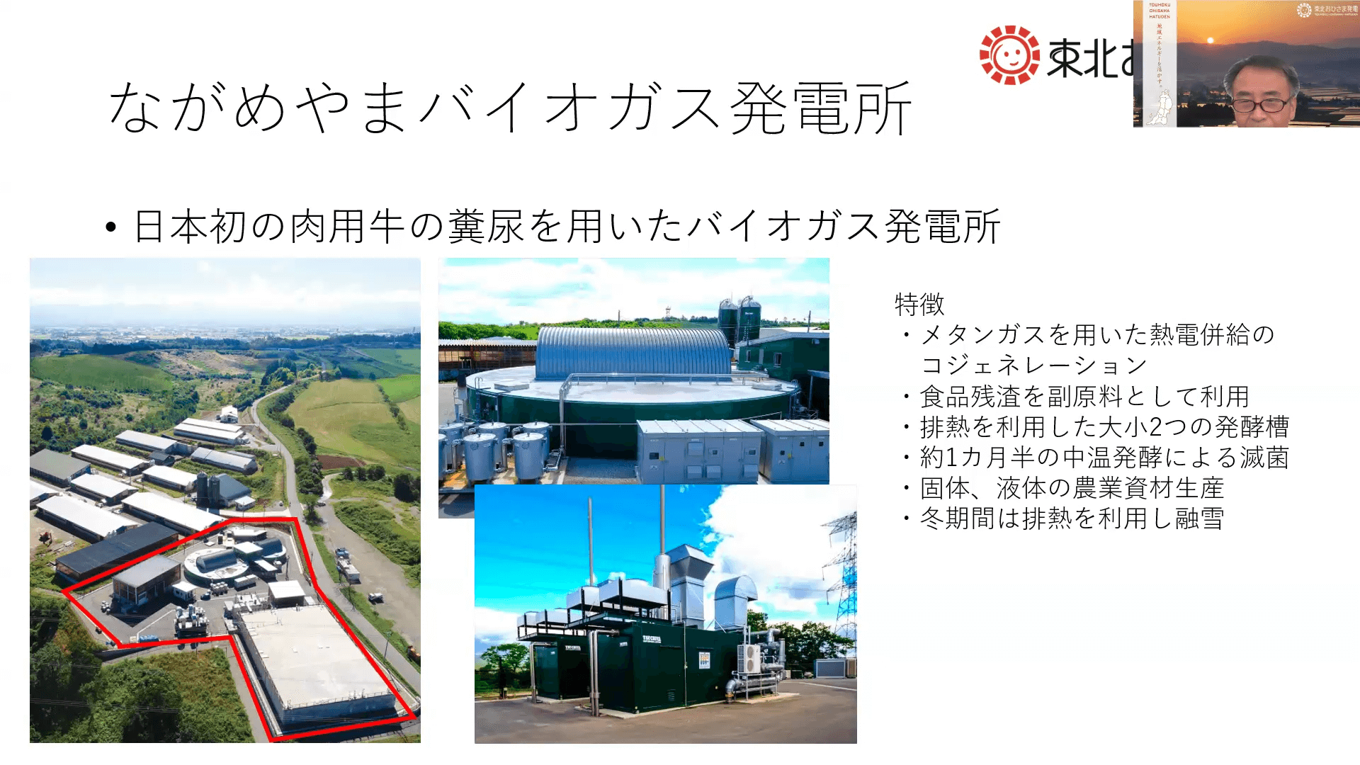 東北おひさま発電さんがある飯豊町とながめやまバイオガス発電所の説明