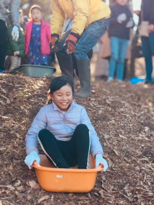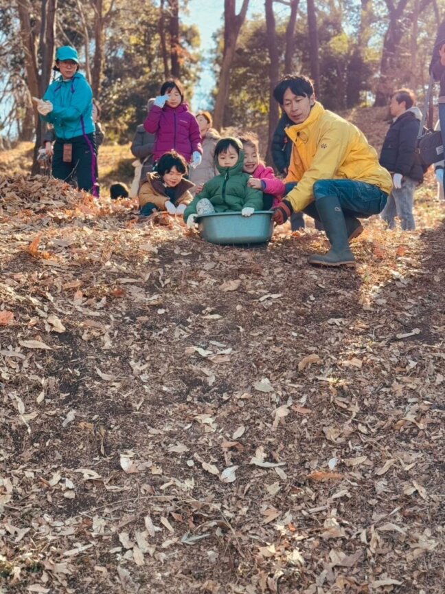 「何度も里山の企画に参加していますが、中でもとても良かったです。様々な収穫体験は楽しいですが、今日の落ち葉プールは、子どもたちの楽しそうな笑い声が溢れて、大人も幸せな気持ちになりました。」