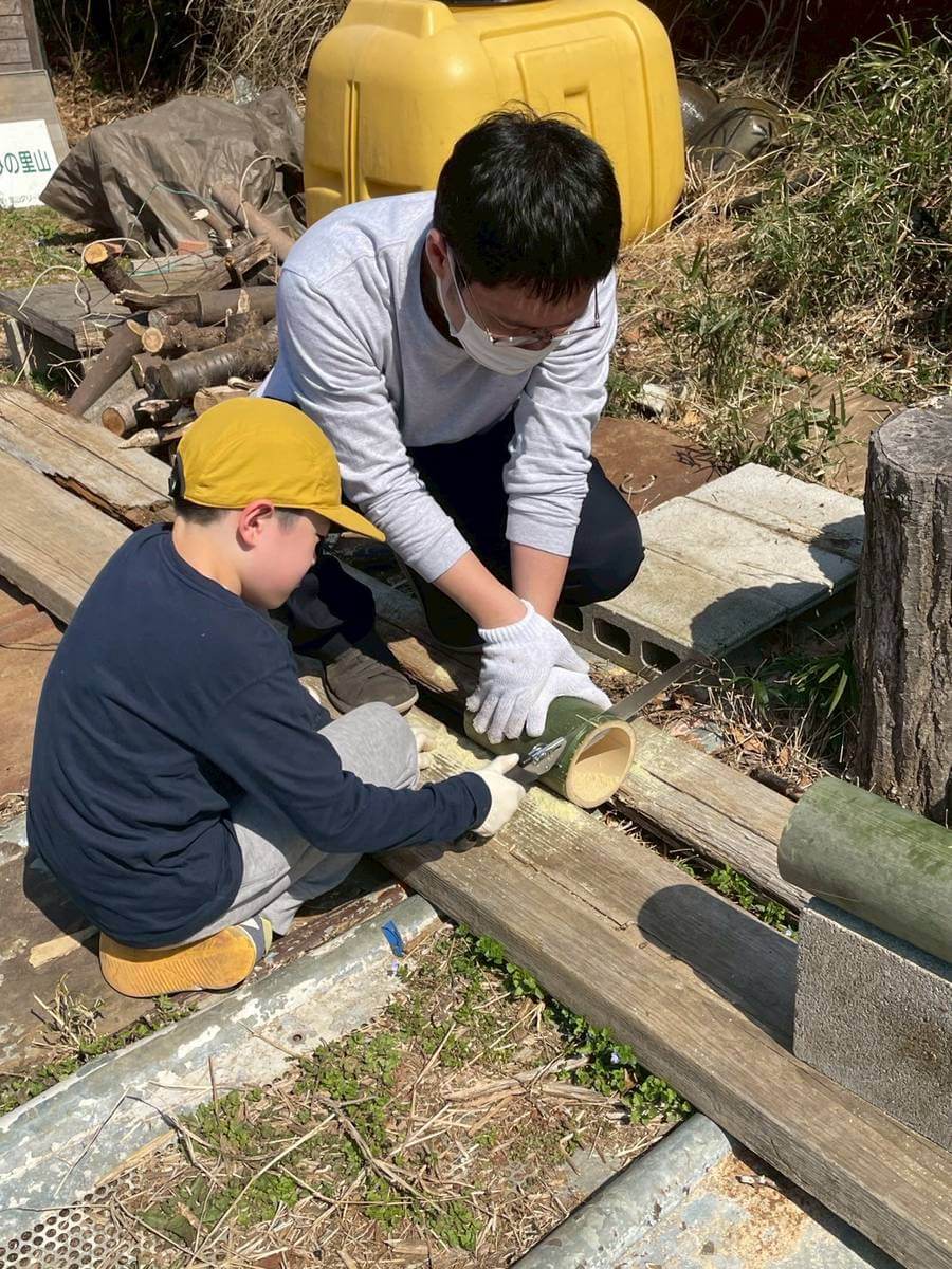 竹林整備で伐採した竹で竹遊び!その後は、里山植物を観察したり、虫を探したり・・・。春を迎えた里山の散策ツアーに出かけました。