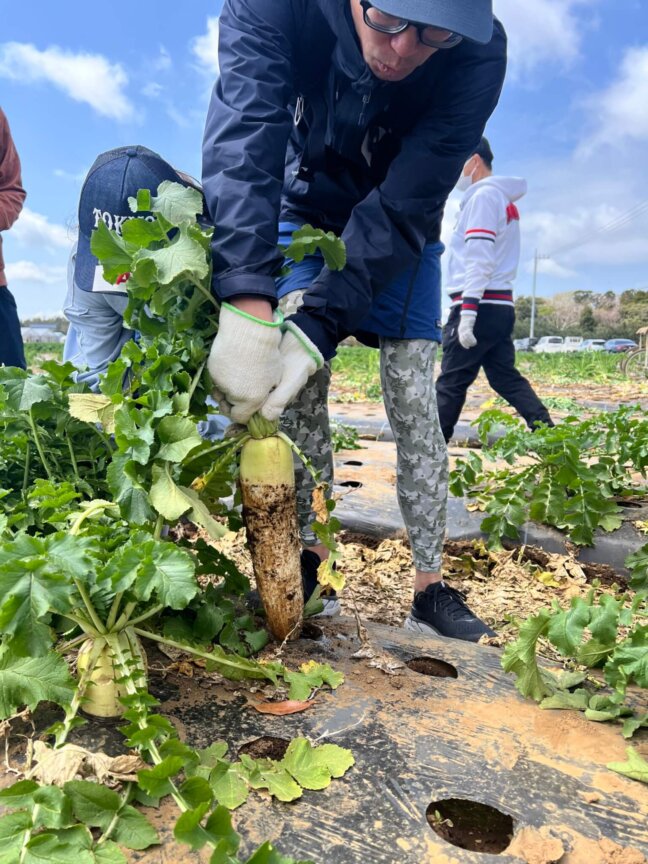 生産者「石毛良樹」さん圃場で大根の収穫体験!力いっぱい手作業で抜きました!