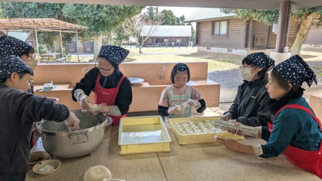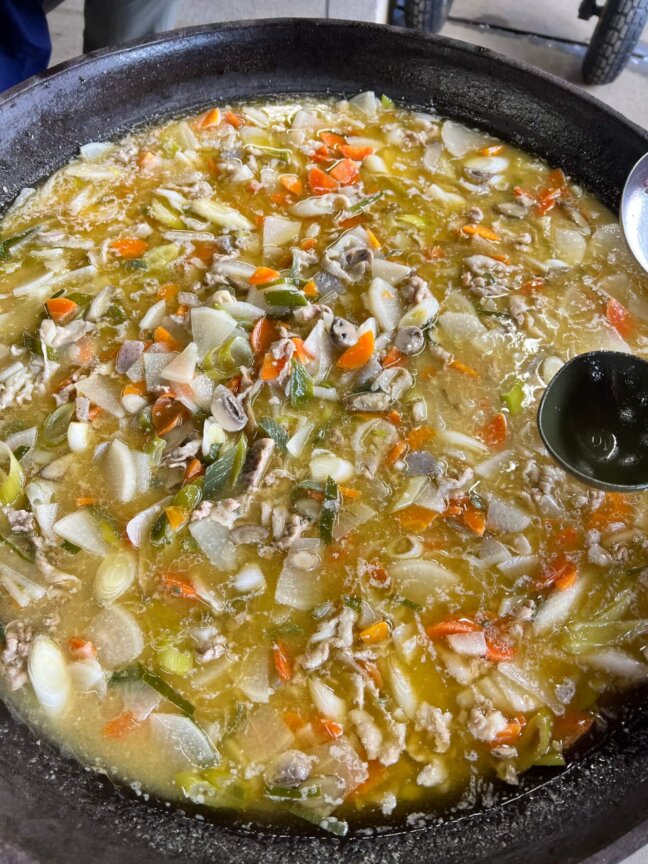 農体験後は生産者と一緒に昼食交流会!女性部のみなさんお手製の特製豚汁とおにぎりをいただきました!