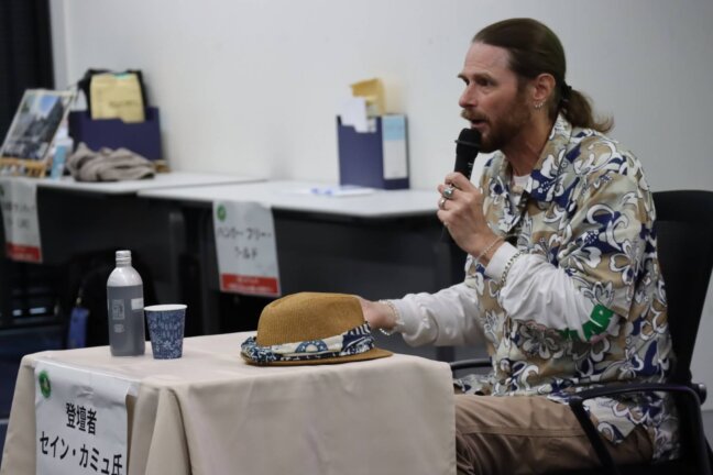 基調講演では、タレントのセイン・カミュ氏が登壇し、幼少期の難民キャンプでのボランティア経験や、障がい者支援活動について語りました。