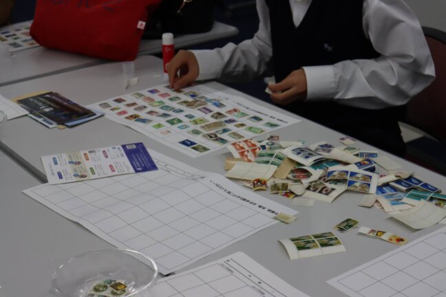 ボランティア体験では、参加者は使用済み切手や書き損じはがきの仕分け作業を行い、支援活動に貢献しました。