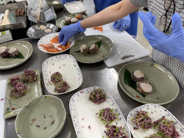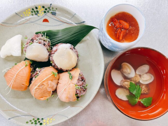 手まり寿司には、「コア・フード野付の秋鮭スモークサーモン」「コア・フード野付のほたて」を使用し、とても豪華なランチになりました!