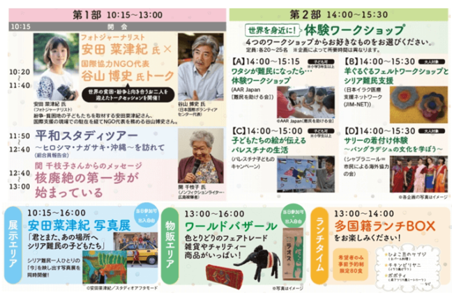 その他にも、安田菜津紀さんの写真展やフェアトレード商品の販売、多国籍料理ランチなど、世界の文化や現状を感じとる企画となりました。