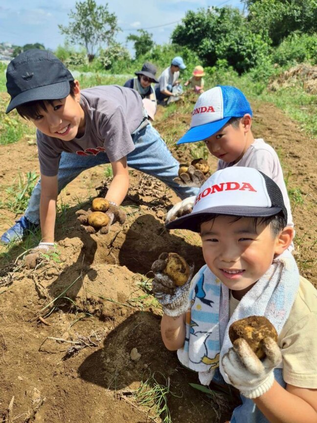大人気のジャガイモ収穫体験!今年は気候も暖かかったのでほくほくの美味しいじゃがいもができました。