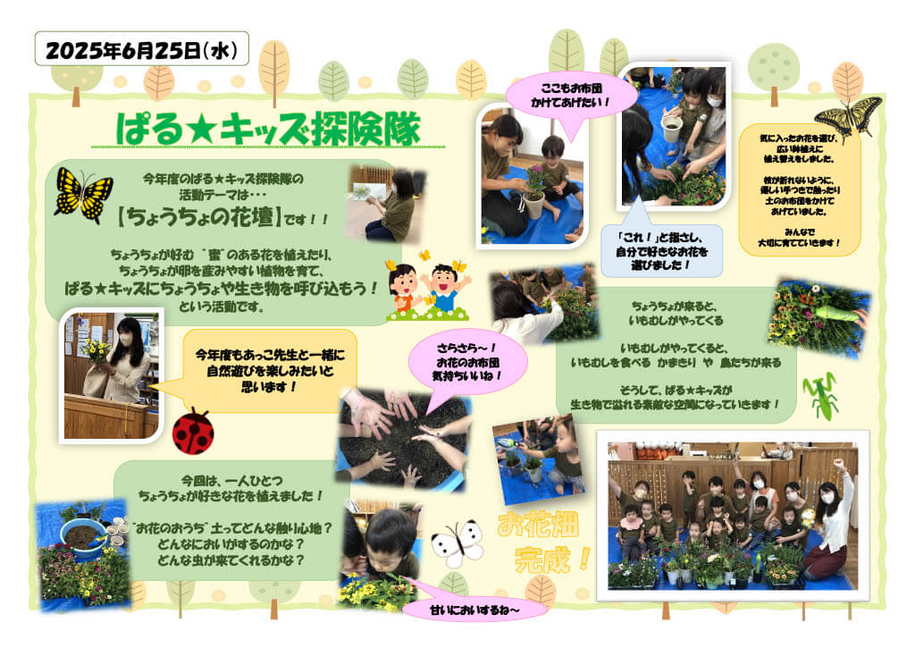 公園での虫たちとの出会いをきっかけに、園に虫たちが遊びに来る環境「ちょうちょの花壇」を作りました!!